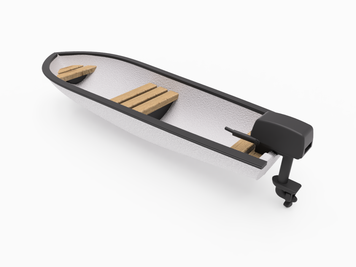 Modellen har sæder både for, midt og agter, hvilket giver en troværdig gengivelse af den typiske bådindretning. Den lille påhængsmotor bagpå er fint detaljeret, og skroget har en glat og naturtro form, som passer perfekt i maritime dioramaer, havnemiljøer eller modeljernbaneopsætninger i H0.
