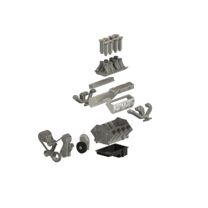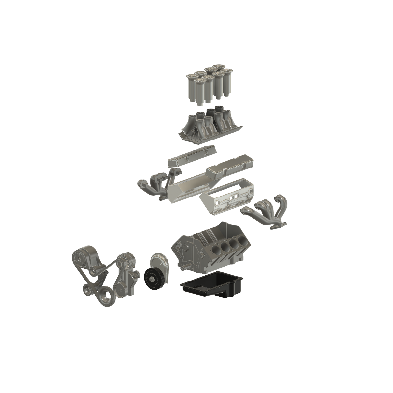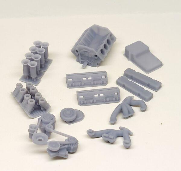 Denne model gengiver en af de mest ikoniske amerikanske V8-motorer – Chevy small block – i skala 1/24. Sættet består af 17 dele og giver mulighed for at tilpasse motoren med enten: