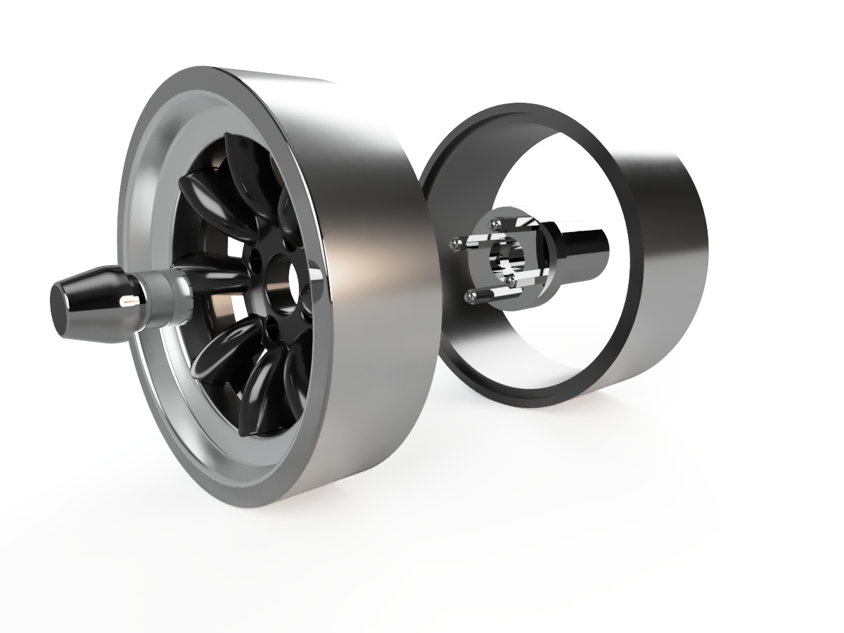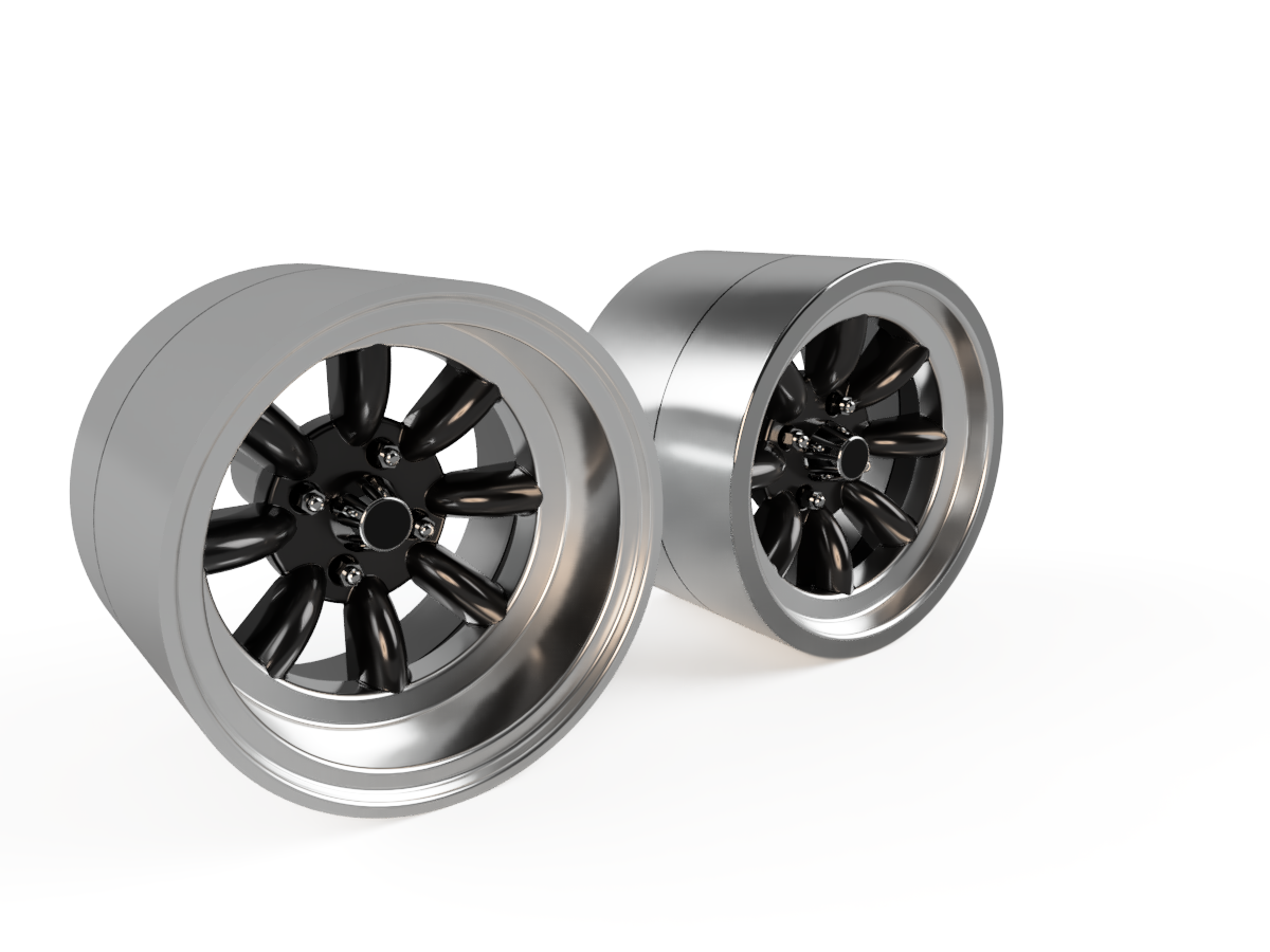 Fælgen er opbygget af flere separate dele, som gør den nem at male og tilpasse. Den bageste fælg-ring kan justeres i dybden, og dækket kan skaleres i bredden, så du opnår præcis det look, du ønsker til din model.